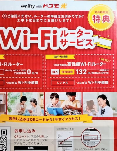 自宅の光回線をOCN光から@nifty with ドコモ光に事業者変更申し込みをしました。