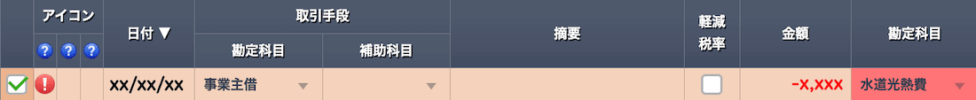 取引手段(貸方)の科目を「事業主借」ではなく「普通預金あるいはクレジットカード」に変更してみた